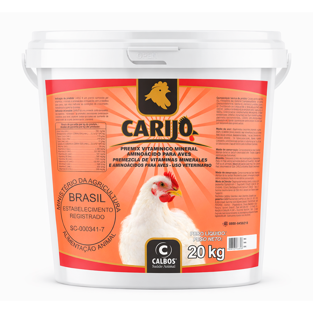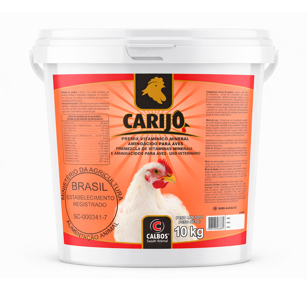 CARIJÓ é um premix composto por vitaminas, minerais e aminoácidos enriquecido com probiótico para aves, que visa melhorar as condições de crescimento, manutenção e ganho de peso.