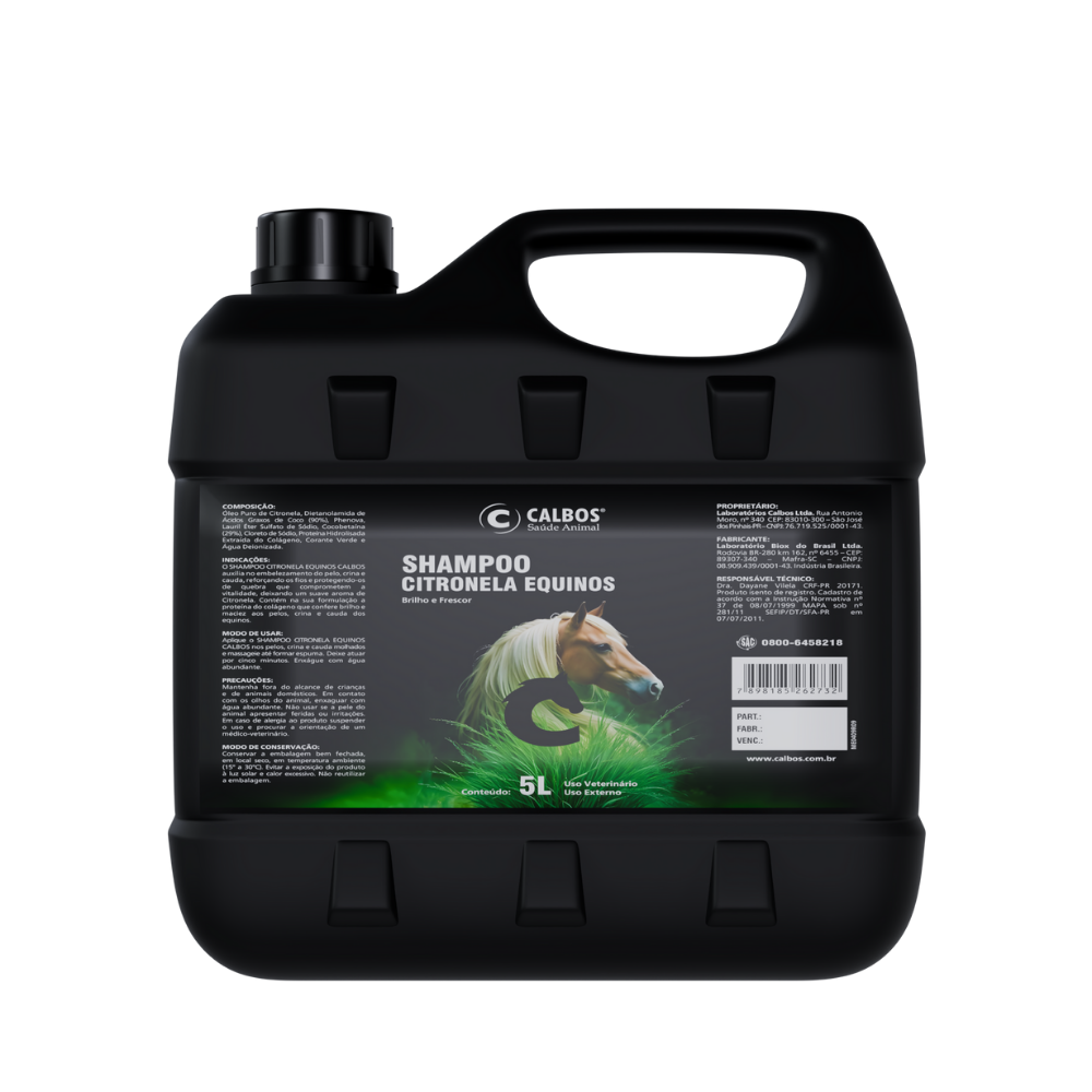 Aplique o Shampoo Citronela Equinos Calbos nos pelos, crina e cauda molhados, e massageie até formar espuma. Deixe atuar por 5 minutos. Enxague com água abundante.